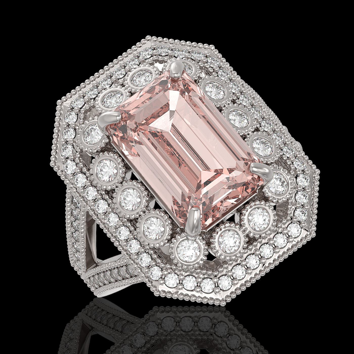 REF-226G4W - SKU: 43385 ---- 6.08 ctw Certified Morganite & Diamond Victorian Ring 14K White Gold