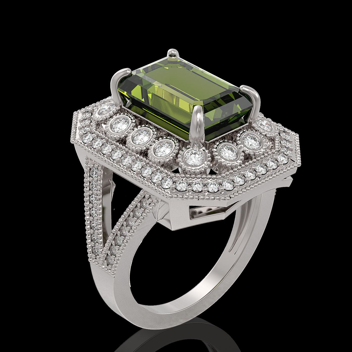 REF-208N8F - SKU: 43382 ---- 6.08 ctw Certified Tourmaline & Diamond Victorian Ring 14K White Gold