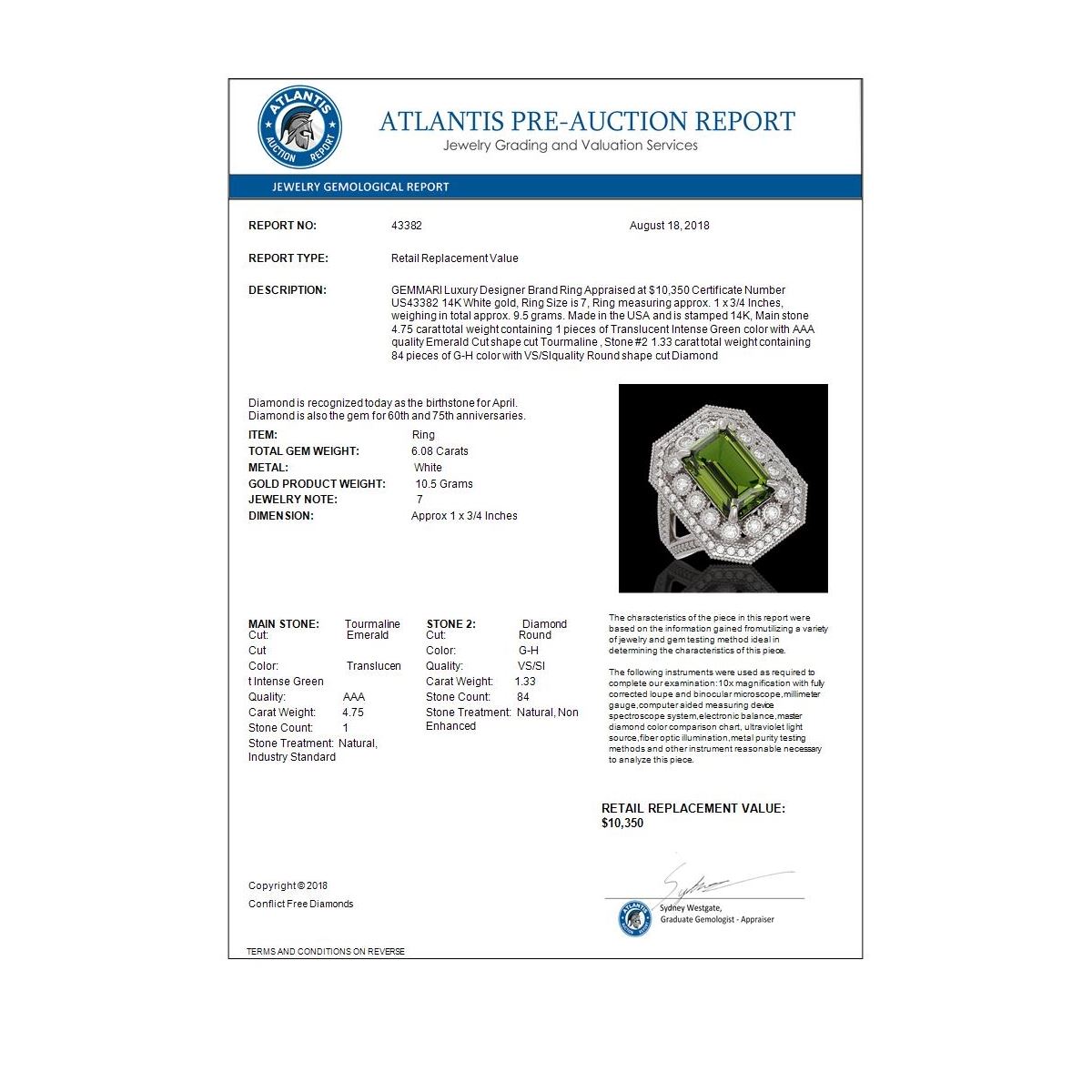 Total Gem weight: 6.08 carats