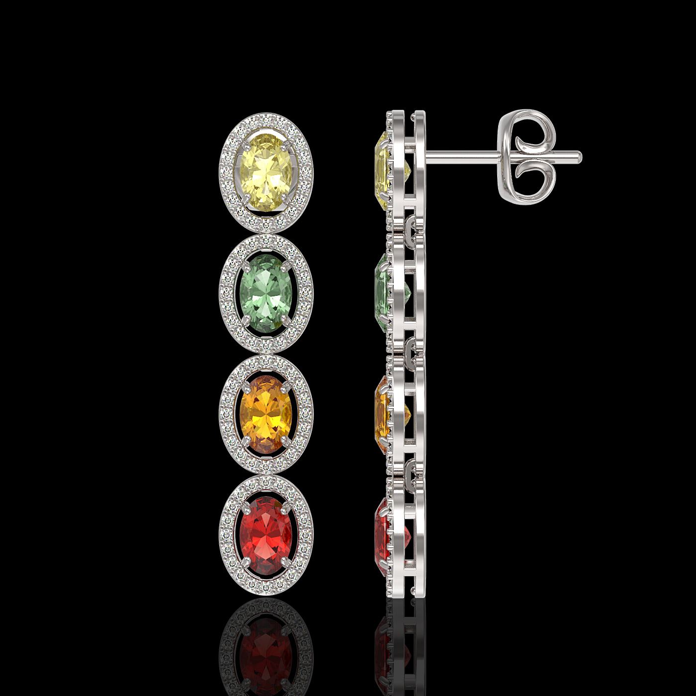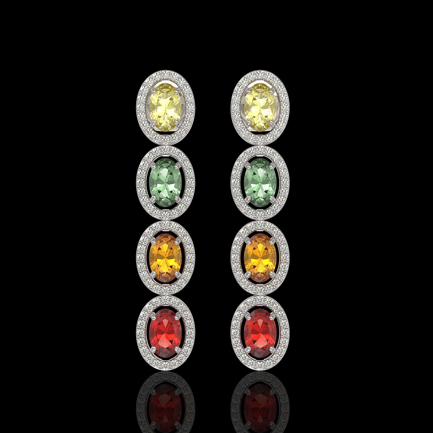 REF-135M3H -40550 ---- 6.09 CTW Multi Color Sapphire & Diamond Halo Earrings 10K White Gold ---- Luxury Designer Brand Earring Appraised at $7,450 Certificate Number US40550 10k White gold, Earring Size is 1 1/2 Inches Long, Earring measuring approx. 8 mm x 1 1/2 Inches, weighing in total approx. 6 grams. Made in the USA and is stamped 10k, Main stone 4.85 carat total weight containing 8 pieces of Saturated purplish Red color with AAA quality Oval shape cut Sapphire , Stone #2 1.24 carat total weight containing 160 pieces of G-H color with VS/SI quality Round shape cut Diamond