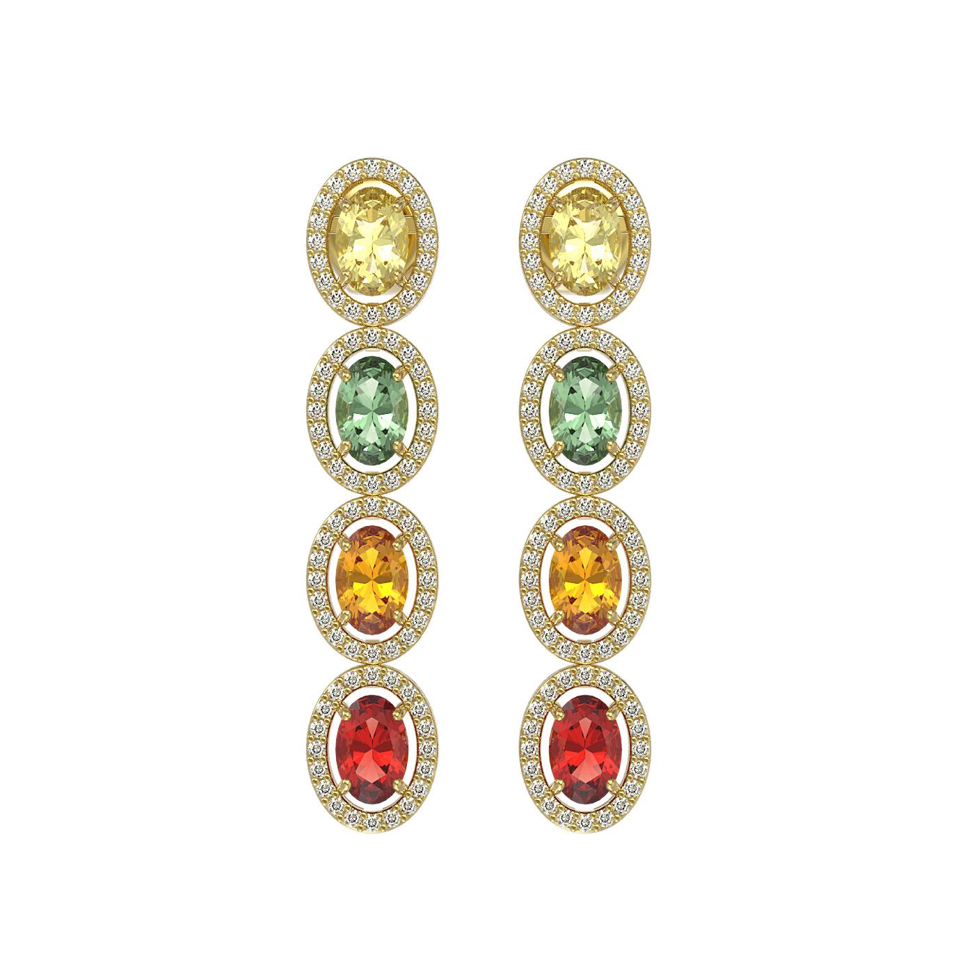 REF-135K3W -40552 ---- 6.09 CTW Multi Color Sapphire & Diamond Halo Earrings 10K Yellow Gold ---- Luxury Designer Brand Earring Appraised at $7,450 Certificate Number US40552 10k Yellow gold, Earring Size is 1 1/2 Inches Long, Earring measuring approx. 8 mm x 1 1/2 Inches, weighing in total approx. 6 grams. Made in the USA and is stamped 10k, Main stone 4.85 carat total weight containing 8 pieces of Saturated purplish Red color with AAA quality Oval shape cut Sapphire , Stone #2 1.24 carat total weight containing 160 pieces of G-H color with VS/SI quality Round shape cut Diamond