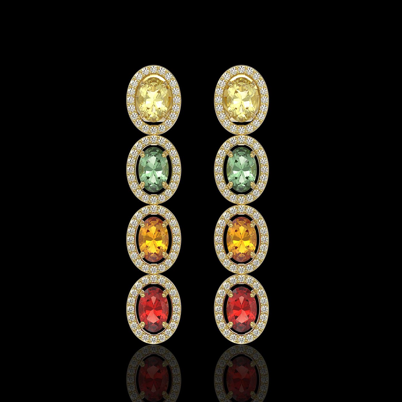 REF-135X3T -40552 ---- 6.09 CTW Multi Color Sapphire & Diamond Halo Earrings 10K Yellow Gold ---- Luxury Designer Brand Earring Appraised at $7,450 Certificate Number US40552 10k Yellow gold, Earring Size is 1 1/2 Inches Long, Earring measuring approx. 8 mm x 1 1/2 Inches, weighing in total approx. 6 grams. Made in the USA and is stamped 10k, Main stone 4.85 carat total weight containing 8 pieces of Saturated purplish Red color with AAA quality Oval shape cut Sapphire , Stone #2 1.24 carat total weight containing 160 pieces of G-H color with VS/SI quality Round shape cut Diamond