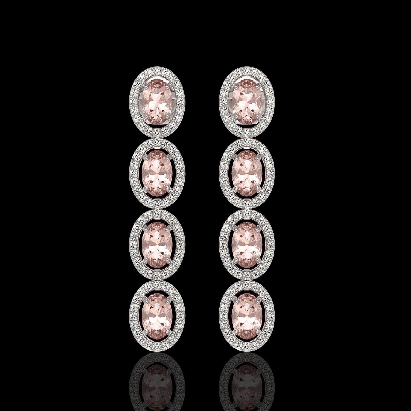 REF-143M6G - SKU: 40514 ---- 6.09 ctw Morganite & Diamond Micro Pave Halo Earrings 10k White Gold