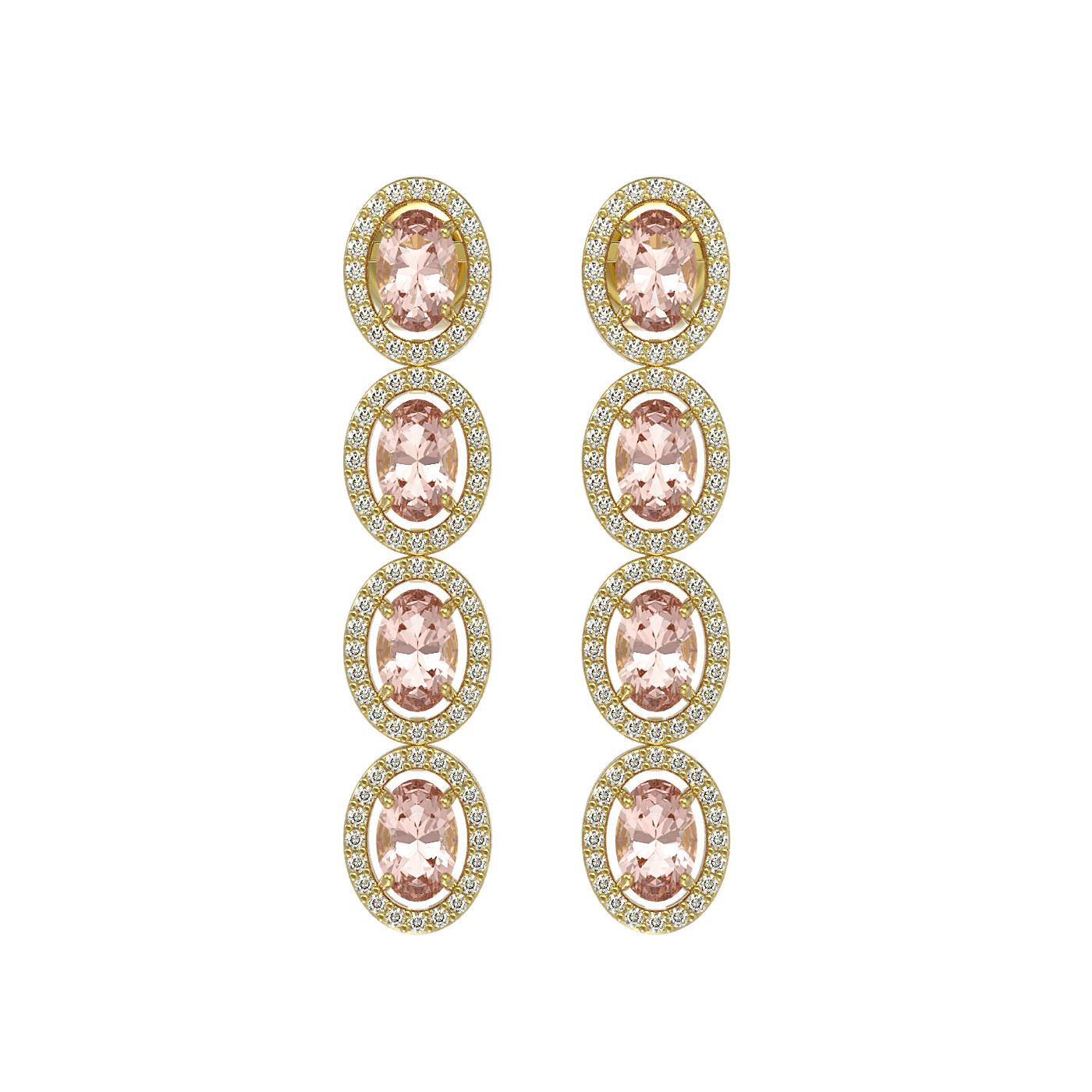 REF-143F6M - SKU: 40516 ---- 6.09 ctw Morganite & Diamond Micro Pave Halo Earrings 10k Yellow Gold