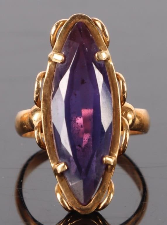 ~6.0ct marquise sapphire 18k yellow gold ladies ring.