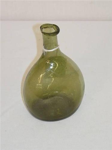 6 1/2" NEW ENGLAND CHESTNUT FLASK IN LIGHT OLIVE GREEN - VERY MINOR 1/2" FRACTURE NEAR SHOULDER;