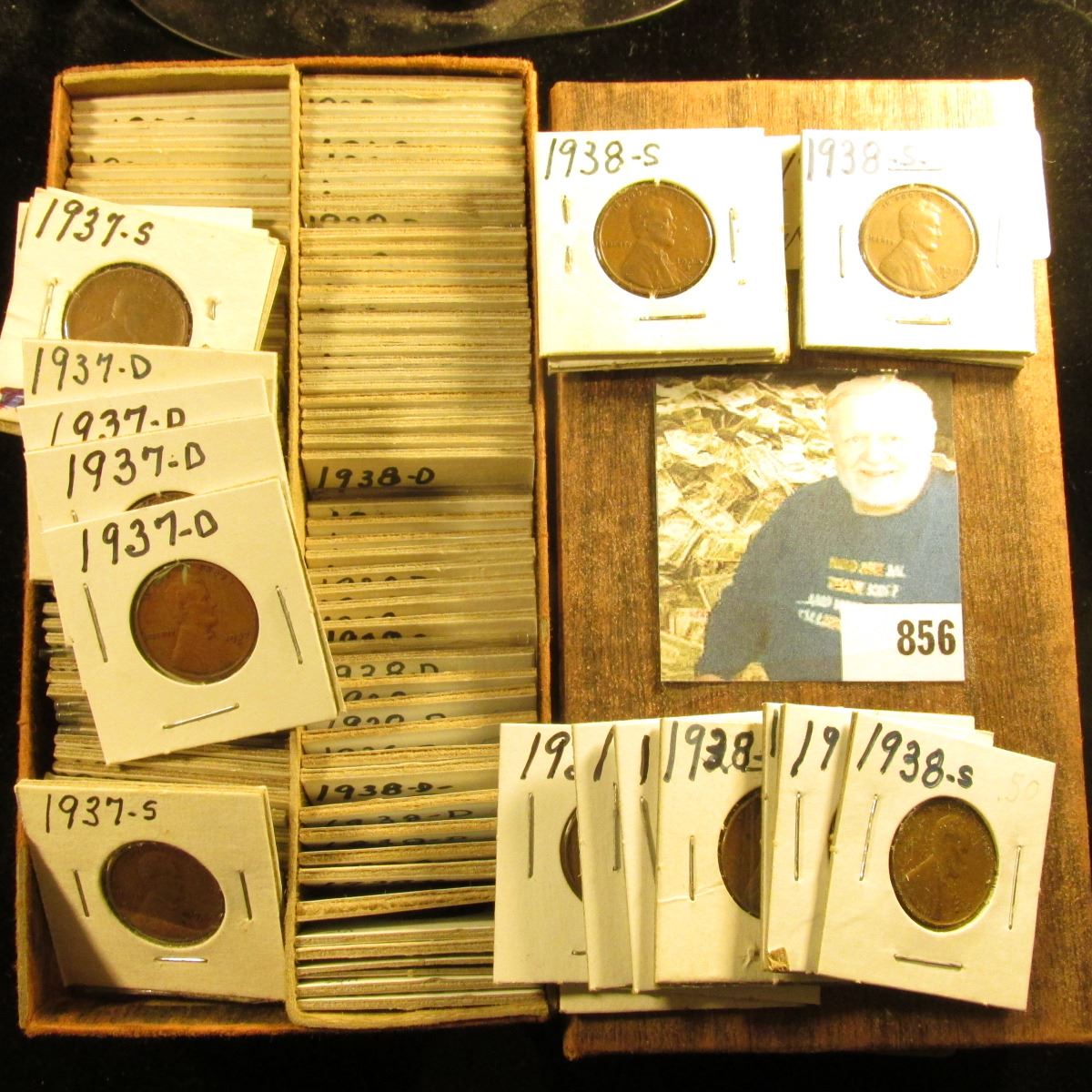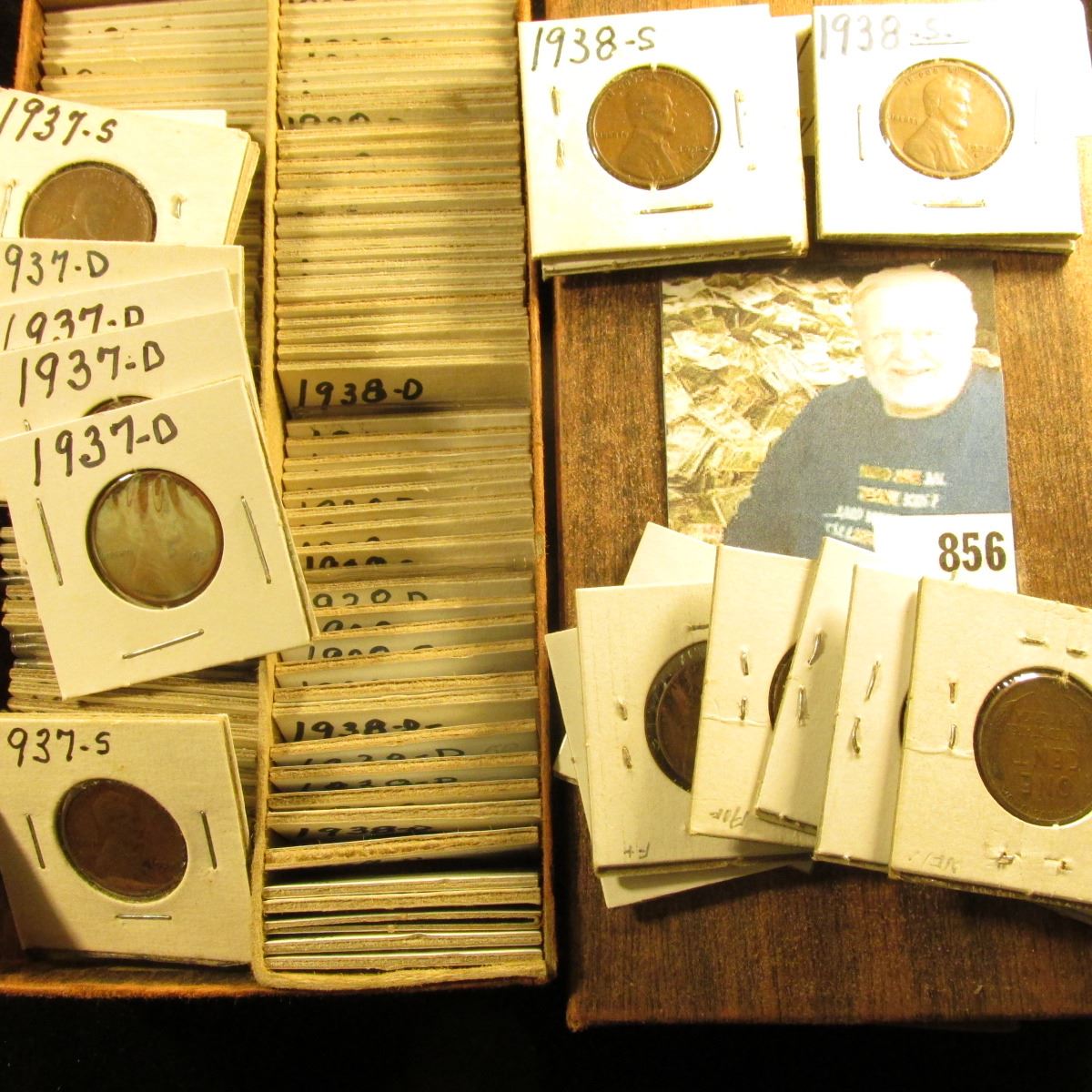 6 1/4" Double Row Stock box full of Cents dating 1937-38 in 1 1/2" x 1 1/2" holders.
