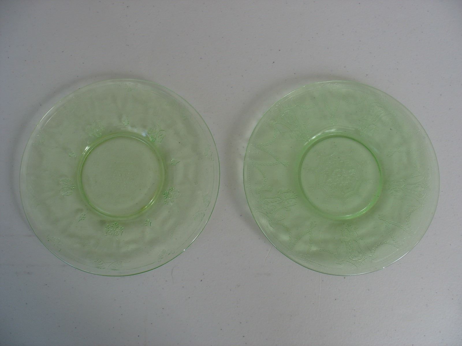6 1/4 INCH GREEN CAMEO BALLERINA DEPRESSION GLASS PLATES - LOT of 2