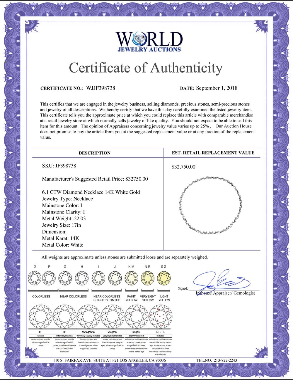 REF-435W5H - JF398738 ---- 6.1 CTW White Round Diamond Necklace 14K White Gold