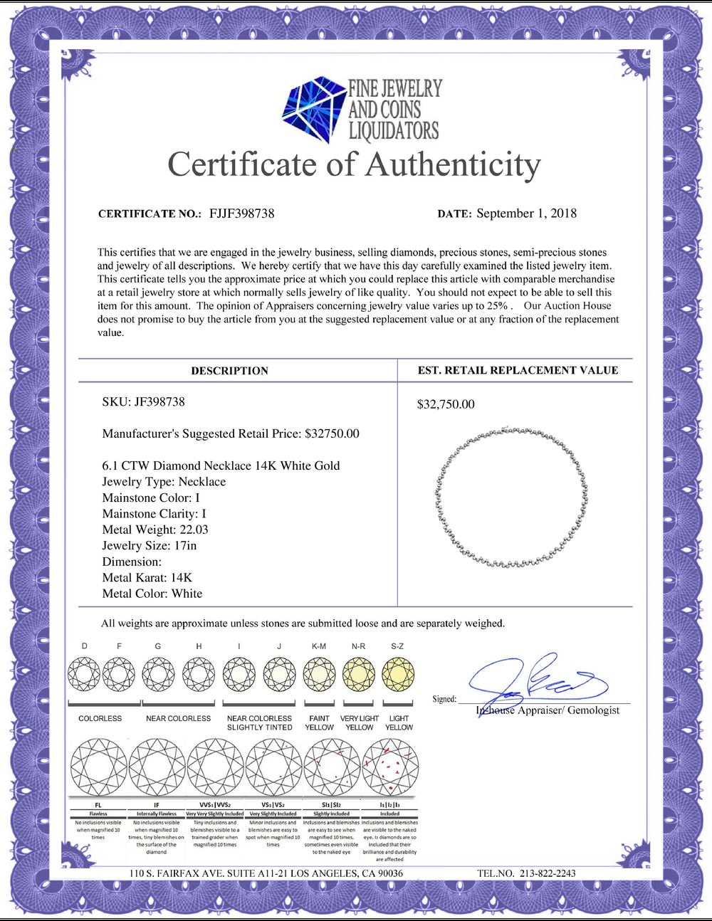 REF-435W5H - JF398738 ---- 6.1 CTW White Round Diamond Necklace 14K White Gold
