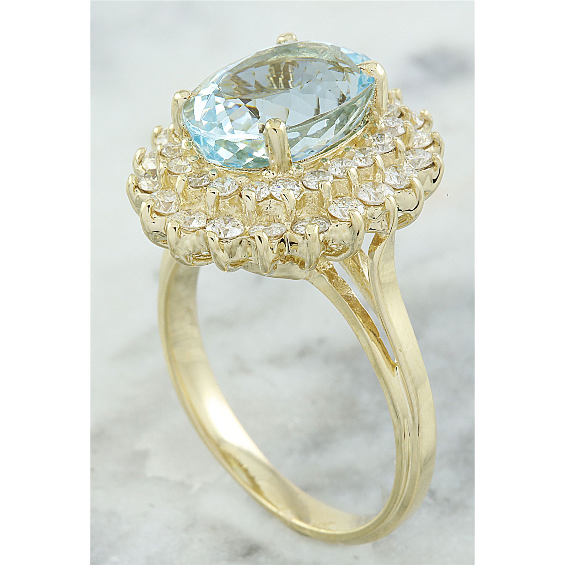 6.10 CTW Aquamarine 18K Yellow Gold Diamond Ring