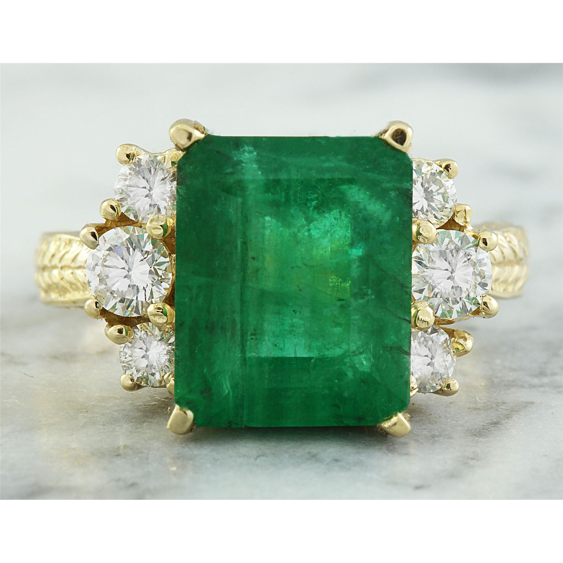 6.10 CTW Emerald 14K Yellow Gold Diamond Ring