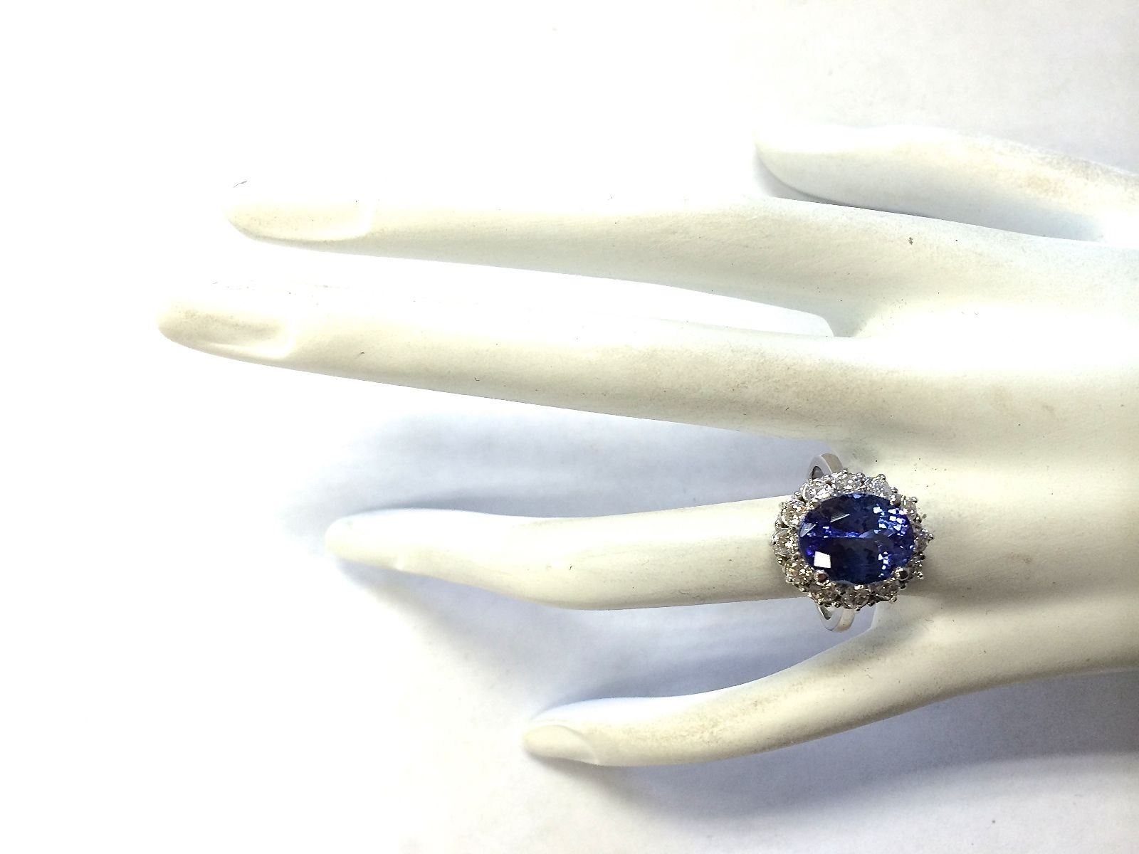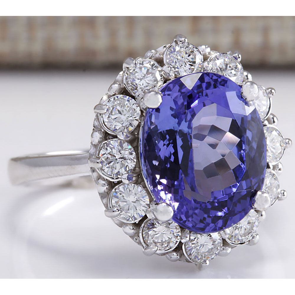 6.10 CTW Natural Blue Tanzanite And Diamond Ring 14K Solid White Gold