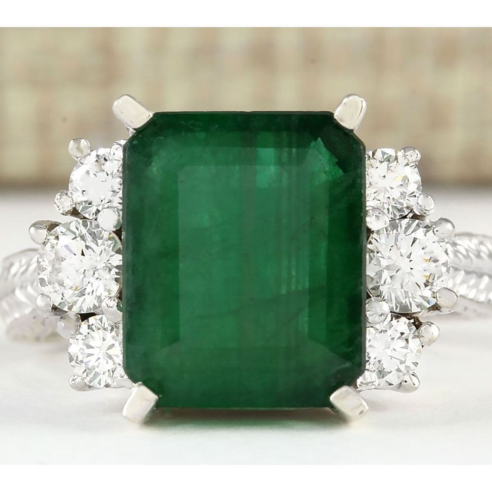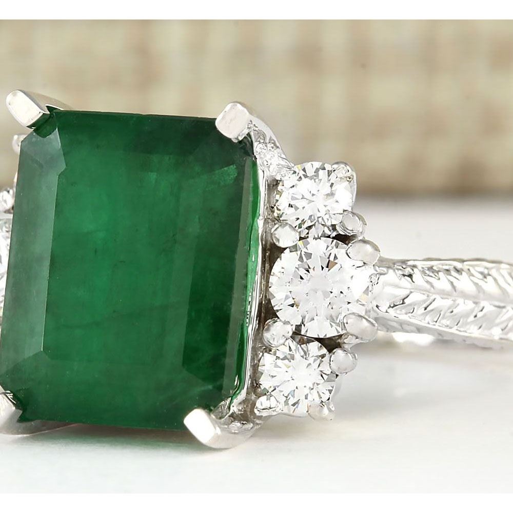 6.10 CTW Natural Emerald And Diamond Ring In 14k White Gold