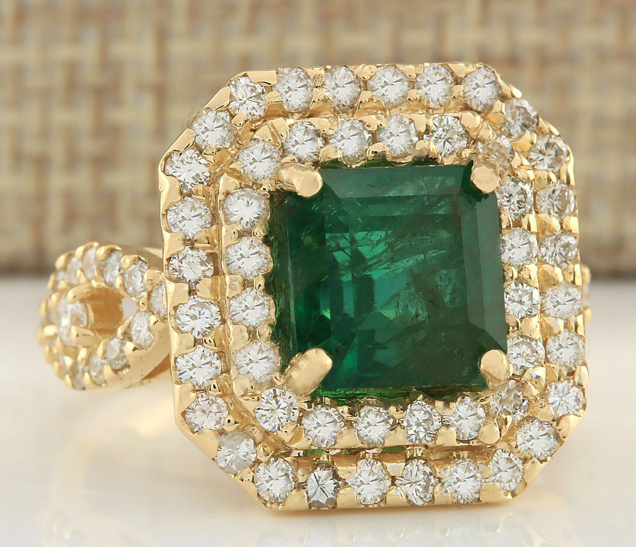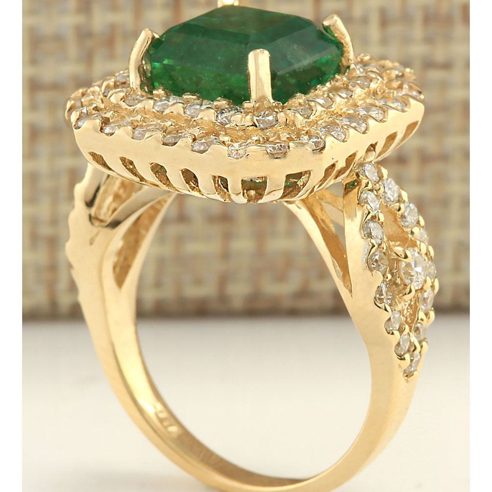 6.10 CTW Natural Emerald And Diamond Ring In 18K Yellow Gold