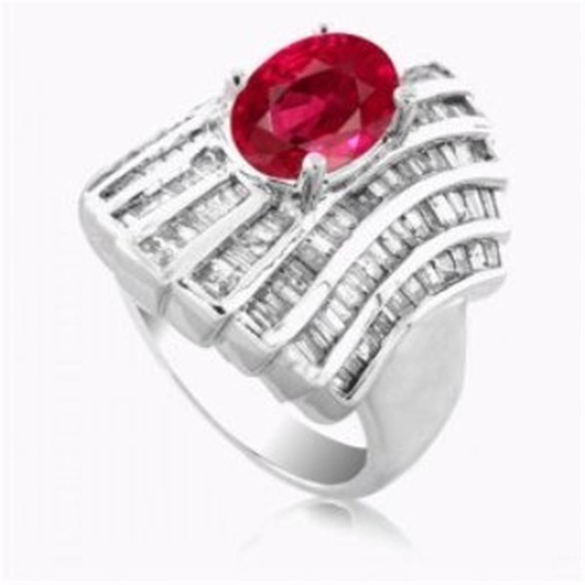 6.10 Ct Ruby Diamond Ring 14Kw (10.38 Grams) 3.71 Ct Oval Ruby AA. 2.39Ct Diamond Baguette GH, I2 (D10090808)