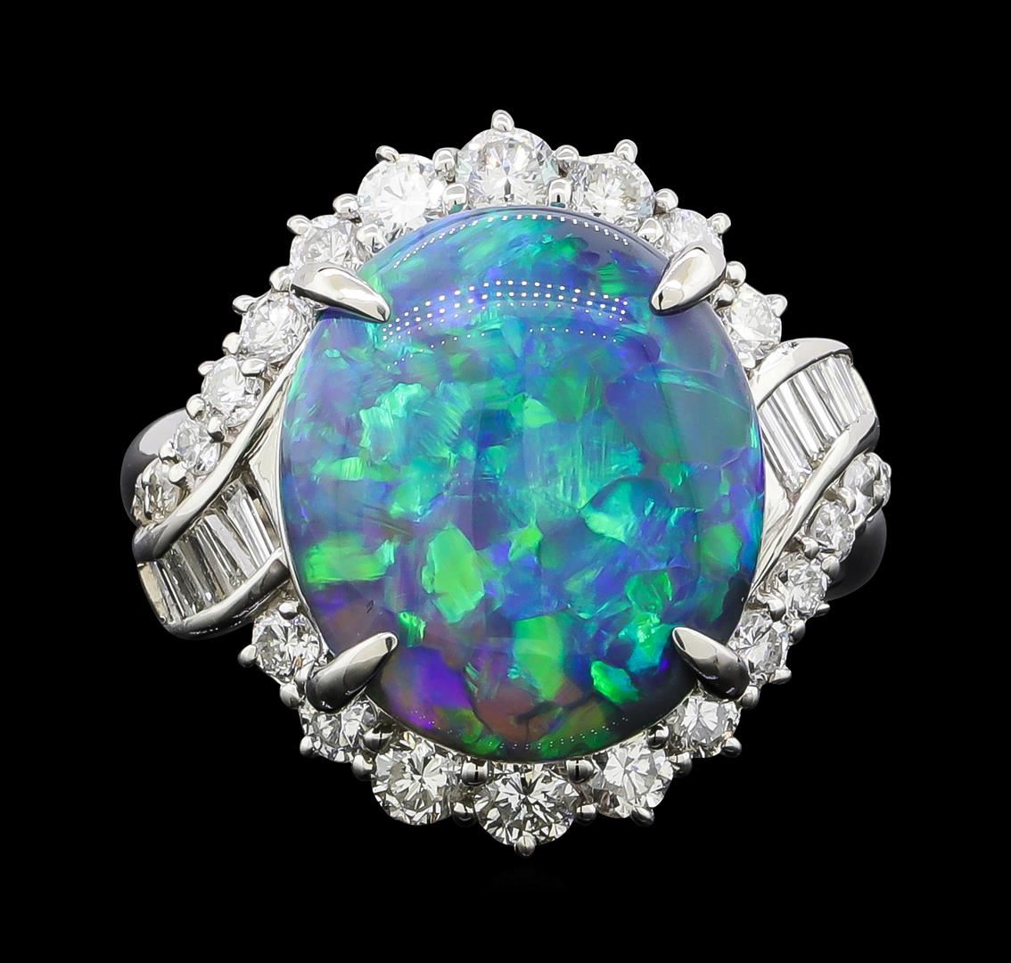 One ring featuring: Platinum containing Black Opal with a total weight of 6.10ct and Diamonds with a total weight of 1.1ct. Total Weight of Ring: 12.9 grams.