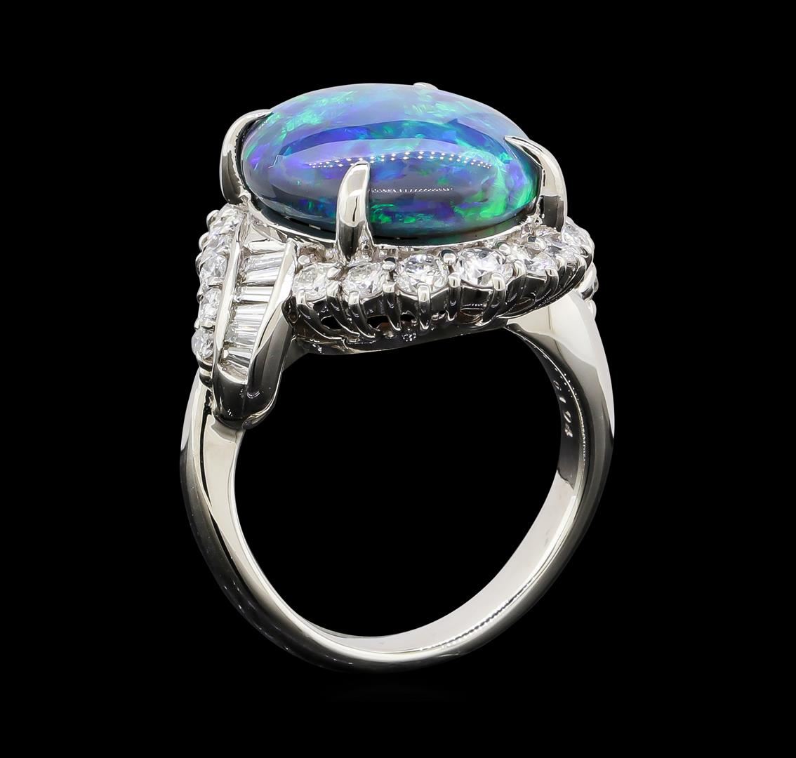 One ring featuring: Platinum containing Black Opal with a total weight of 6.10ct and Diamonds with a total weight of 1.1ct. Total Weight of Ring: 12.9 grams.
