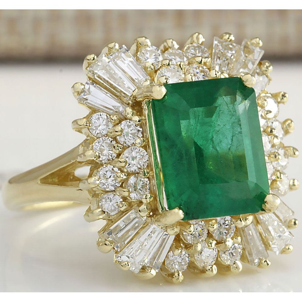 6.11 CTW Natural Emerald And Diamond Ring 18K Solid Yellow Gold