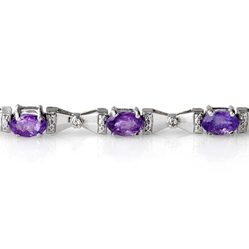 REF-90A2X -13397 ---- 6.11 CTW Tanzanite & Diamond Bracelet 14K White Gold ---- Luxury Designer Brand Bracelet Appraised at $6,950 Certificate Number US13397 14k White gold, Bracelet Size is 7 Inches, Bracelet measuring approx. 7" x 3/8", weighing in total approx. 10.5 grams. Made in the USA and is stamped 14k, Main stone 6 carat total weight containing 11 pieces of Intense Violet Blue color with AAA quality Oval shape cut Tanzanite , Stone #2 0.11 carat total weight containing 11 pieces of H-I color with VS/SI quality Round shape cut Diamond