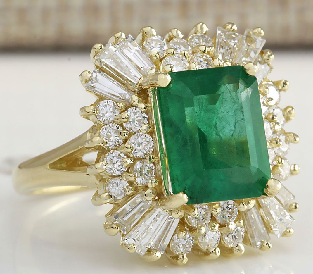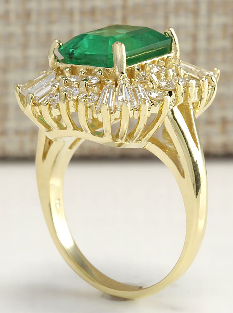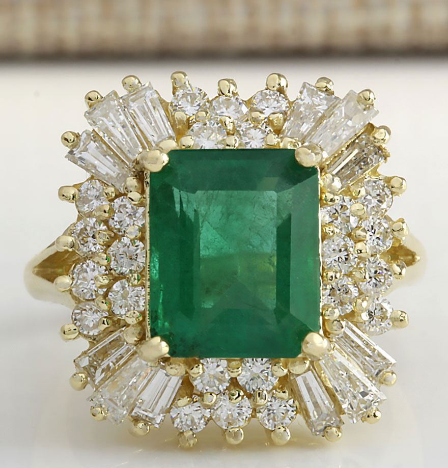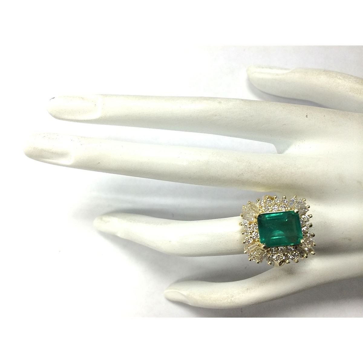 Stamped: 14K Ring Size: 7.25 Total Ring Weight: 11.5 Grams Diamond Weight: Total natural diamond weight is 1.96carat. SI1-SI2 clarity / G-H color Gemstone Weight: Total Natural Emerald Weight is 4.15ctw (Measures: 10.80x8.73mm) High End Gemstone Face Measures: 19.70x18.63mm Main stone color: Green [SKU:702581]