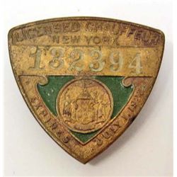 1922 LICENSED CHAUFFEUR NEW YORK PINBACK BADGE