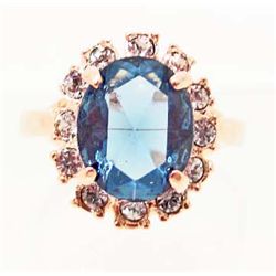 18K GOLD PLATED SAPPHIRE BLUE AUSTRIAN CRYSTAL RING