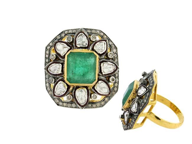 EMERALD AND DIAMOND RING/Diamond Count 1:/Diamond Total Carat :0.98/Diamond Color & Clarity:J-L/I1-I2 Single Cut /Diamond Count 2:/Diamond 2 CTW:/Diamond Count 3:/Gemstone Count 1:/Gemstone CTW:5.14/Gemstone Dimension:/Gemstone Shape:Emerald Cut-Emerald/Gemstone Count 2:/Gemstone Shape:/Ring Dimension:/Metal Type 1:14kYellow Gold :Gram Weight:3/Metal Type 2:over0.925Sterling Silver / Weight Gram:6.2/Gross Weight :10.47/Ring Size:7