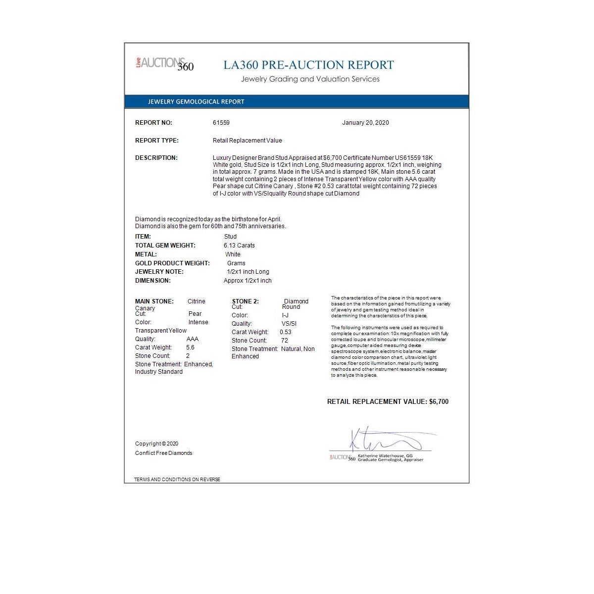 REF-152Y2X - SKU: 61559 ---- 6.13 ctw Canary Citrine & Diamond Earrings 18K White Gold