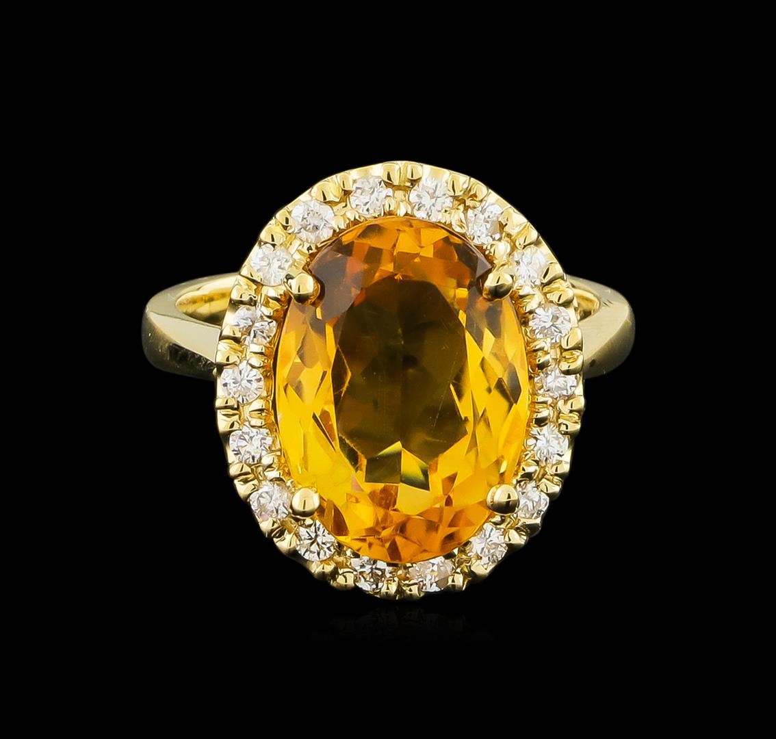 One Ring featuring: 14KT Yellow Gold weighing 5.88 grams containing one Citrine center stone with a total weight of 6.14ct and Diamonds with a total weight of 0.38ct.