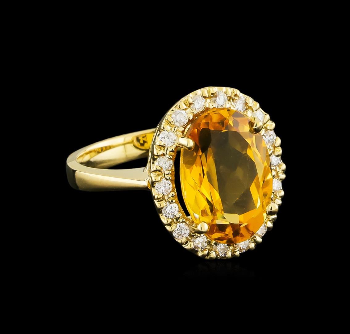 One Ring featuring: 14KT Yellow Gold weighing 5.88 grams containing one Citrine center stone with a total weight of 6.14ct and Diamonds with a total weight of 0.38ct.