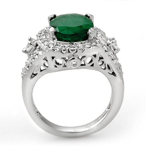 REF-126Y2K -11917 ---- 6.15 CTW Emerald & Diamond Ring 14K White Gold ---- Luxury Designer Brand Ring Appraised at $9,000 Certificate Number US11917  14k White gold,  Ring Size is 6.5, Ring measuring approx. 5/8" x  3/4" , weighing in total approx. 10.1 grams. Made in the USA and is stamped 14k, Main stone 5 carat total weight containing 1 pieces of Intense Green color with AAA quality Oval shape cut Emerald , Stone #2 1.15 carat total weight containing 52 pieces of H-I color with  VS/SI quality Round shape cut Diamond