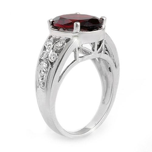 REF-40F2N -11010 ---- 6.15 CTW Garnet & Diamond Ring 10K White Gold ---- Luxury Designer Brand Ring Appraised at $2,450 Certificate Number US11010 10k White gold, Ring Size is 7, Ring measuring approx. 7/6" x 3/4" , weighing in total approx. 6.2 grams. Made in the USA and is stamped 10k, Main stone 6 carat total weight containing 1 pieces of Saturated purplish Red color with AAA quality Oval shape cut Garnet , Stone #2 0.15 carat total weight containing 10 pieces of H-I color with VS/SI quality Round shape cut Diamond