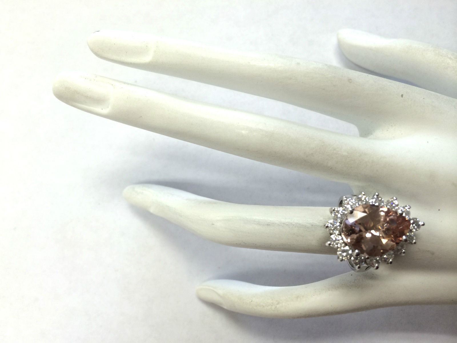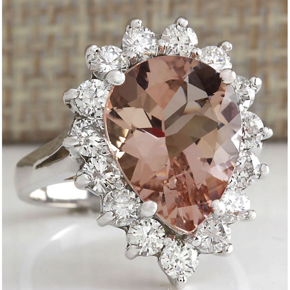 6.16 CTW Natural Peach Morganite And Diamond Ring In 18K Solid White Gold