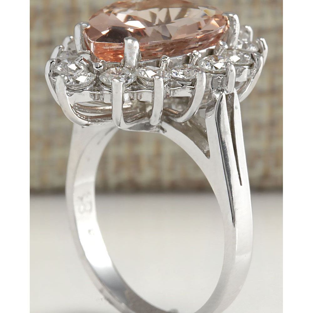 6.16 CTW Natural Peach Morganite And Diamond Ring In 18K Solid White Gold