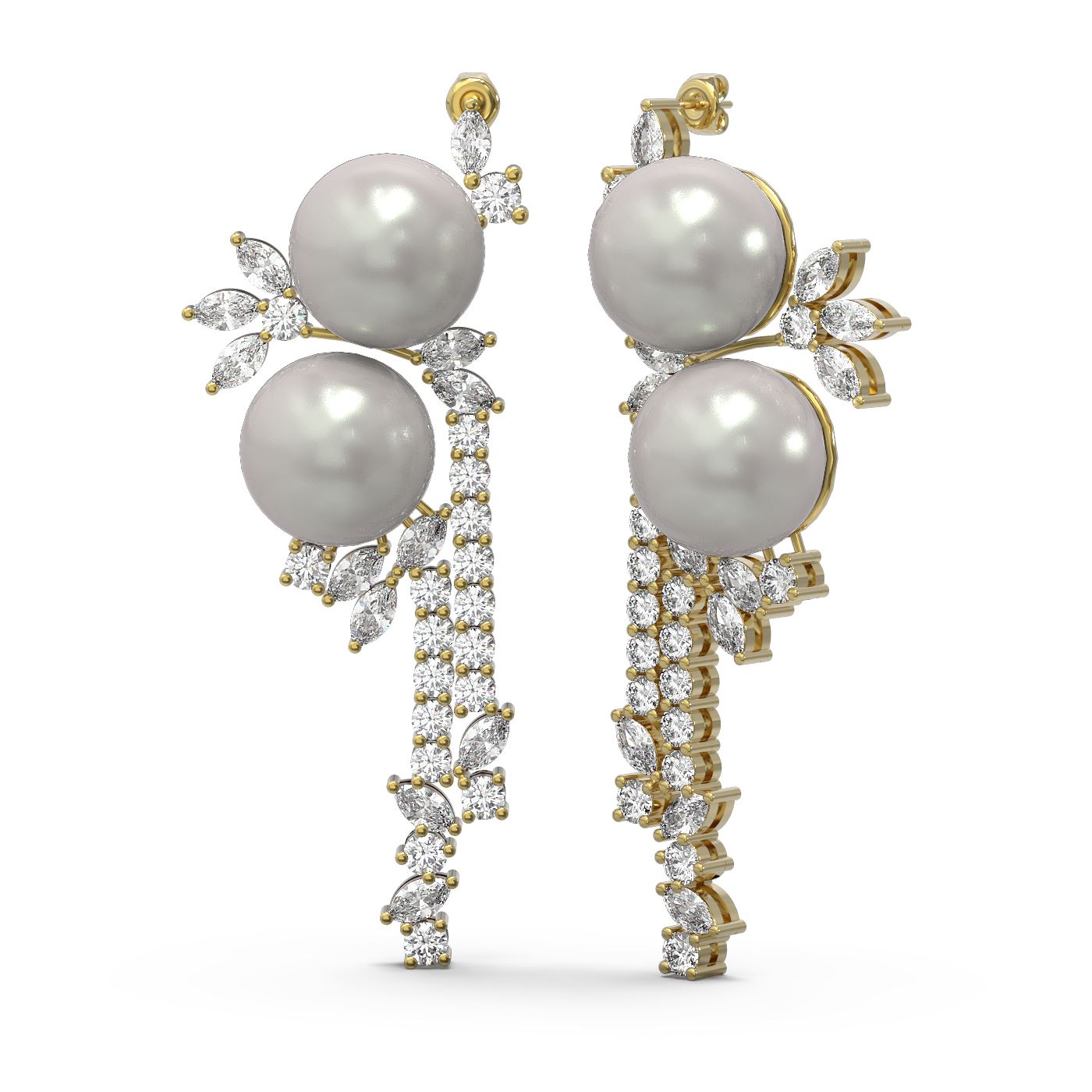 SKU: 61207 ---- 6.17 ctw Diamond & Pearl Earrings 18K Yellow Gold