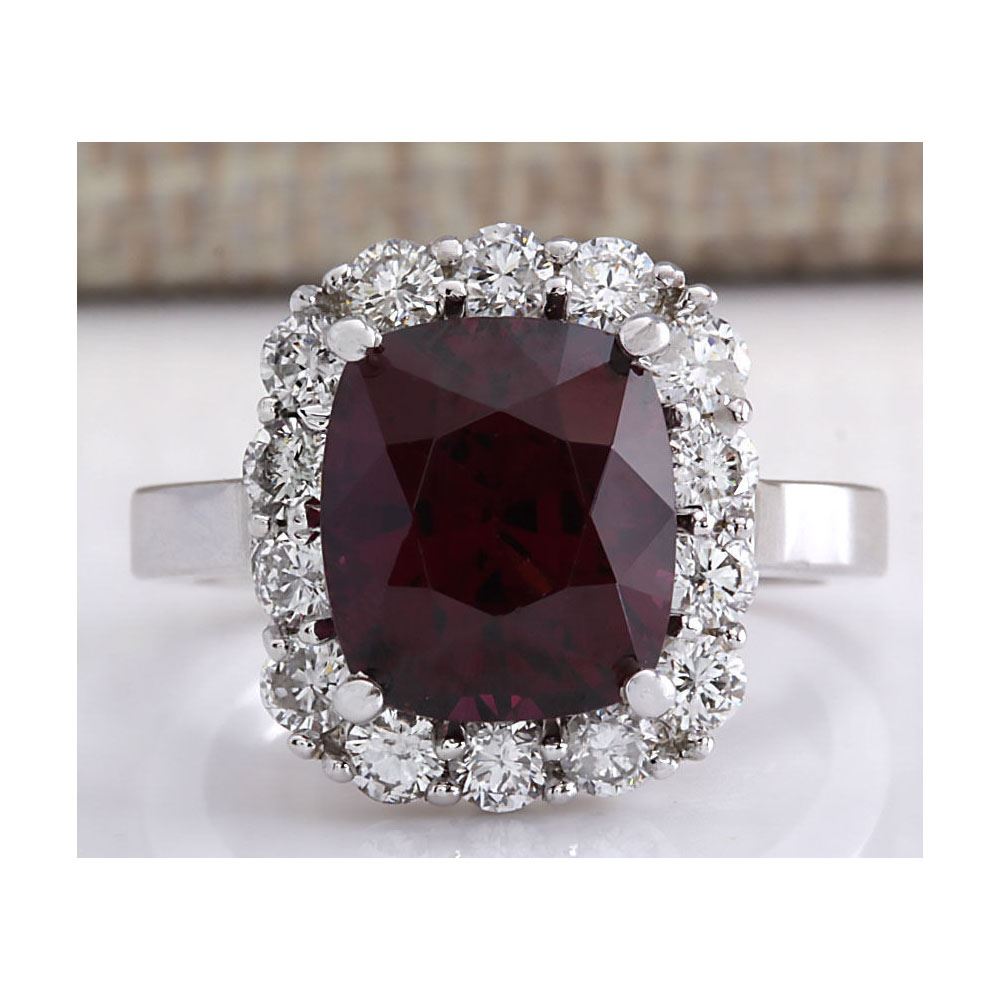 6.17CTW Natural Red Hessonite Garnet And Diamond Ring In18K White Gold