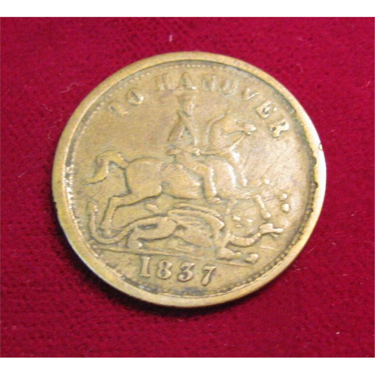 6. 1837 "To Hanover" Regina Victoria Token. VG-8.