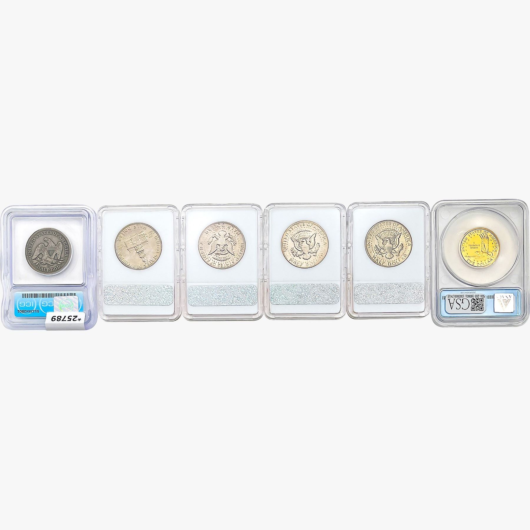 h. Since GSA cannot examine encapsulated coins or notes, they are sold “AS IS” without GSA’s grading opinion, and may not be returned for any reason. GSA shall not be liable for any patent or latent defect or controversy pertaining to or arising from any encapsulated Product. In any such instance, Bidder’s remedy, if any, shall be solely against the service certifying the Product.