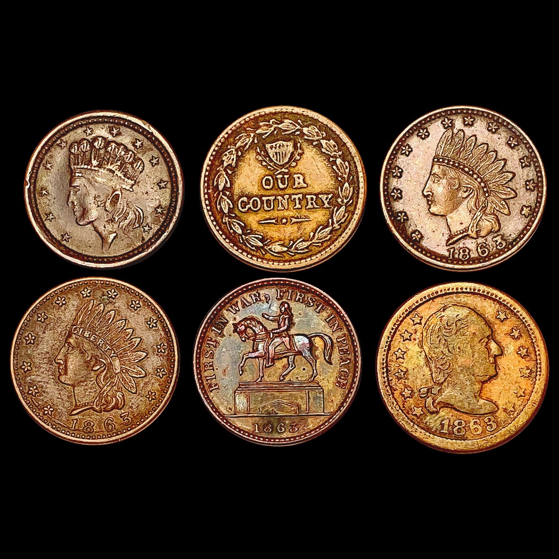 [6] 1863-1864 Civil War Token Lot HIGH GRADE