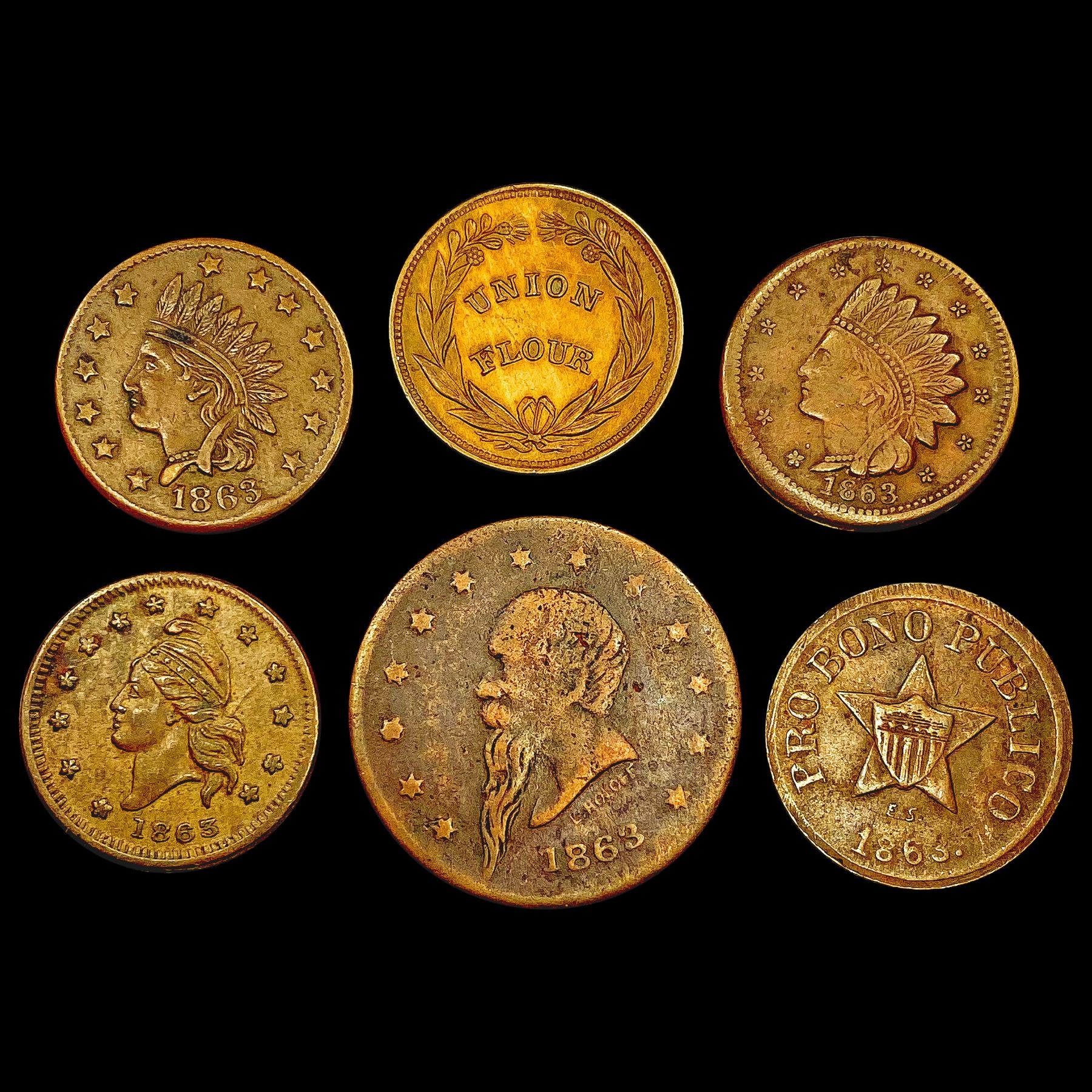 [6] 1863-64 Civil War Tokens HIGH GRADE