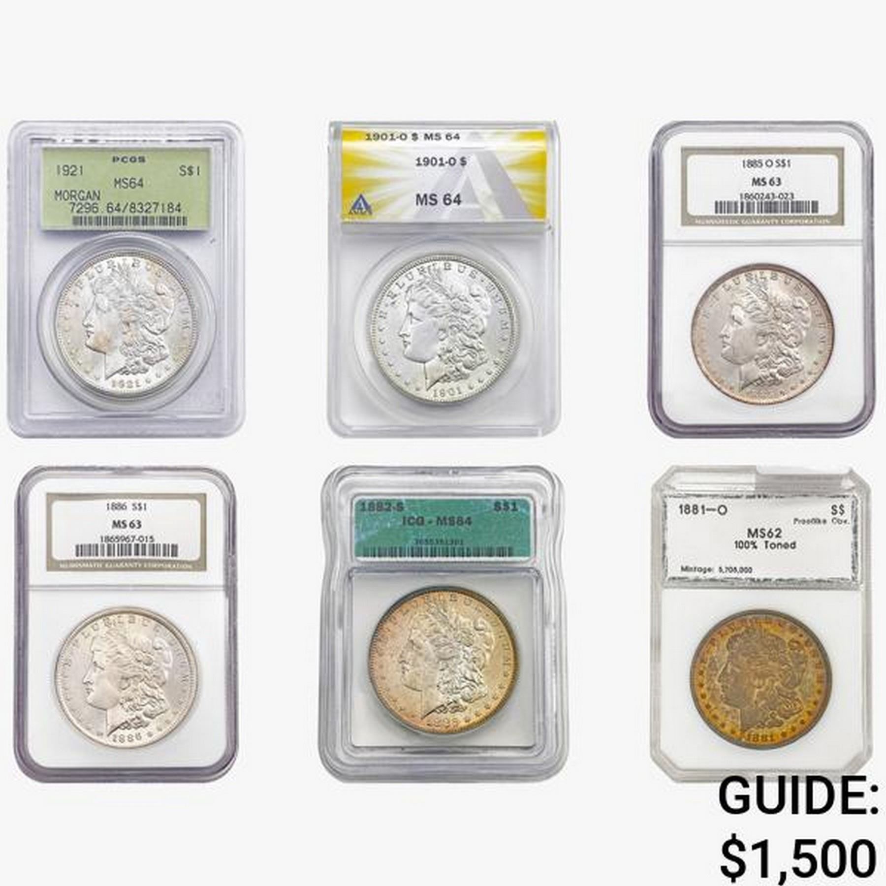 COINS AND CURRENCY LISTED IN GSA’S CATALOG AS GRADED AND ENCAPSULATED BY PCGS, NGC, ANACS, ICG, PCGS CURRENCY, PMG, PCGS BANKNOTE GRADING, CMC OR ANY OTHER THIRD-PARTY GRADING SERVICE ARE LIKEWISE SOLD “AS-IS” EXCEPT AS EXPRESSLY SET FORTH HEREIN. ALL THIRD-PARTY GRADING SERVICE GUARANTEES, INCLUDING AUTHENTICITY, ARE THE SOLE RESPONSIBILITY OF THE THIRD-PARTY GRADING SERVICE AND NOT WARRANTIES OR GUARANTEES OF GSA. BIDDERS SHOULD CONTACT THESE THIRD-PARTY GRADING SERVICES DIRECTLY WITH RESPECT TO ANY CLAIMS OR QUESTIONS THEY MAY HAVE CONCERNING THEIR GUARANTEES AND WARRANTIES. BIDDERS ACKNOWLEDGE AND AGREE THAT AUCTIONEER IS NOT BOUND BY OR LIABLE FOR ANY OPINION OR CERTIFICATION BY ANY THIRD-PARTY GRADING SERVICE. REMOVAL OF A PRODUCT FROM ITS PROTECTIVE CASING OR HOLDER OR ALTERATION OF ANY COIN HOLDER WAIVES ALL RIGHTS CONCERNING THE PRODUCT CONTAINED THEREIN.