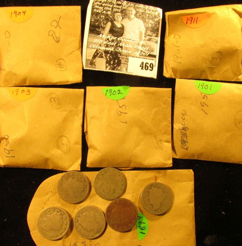 (6) 1899, (3) 1901, (7) 02, (10) 03, (7) 04, & (15) 1911 U.S. Liberty Nickels.