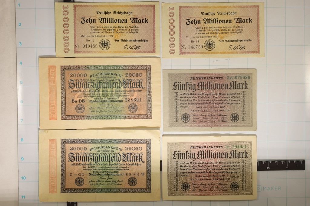 6-1923 GERMAN BILLS:2-20,000, 2-10,000,000 &