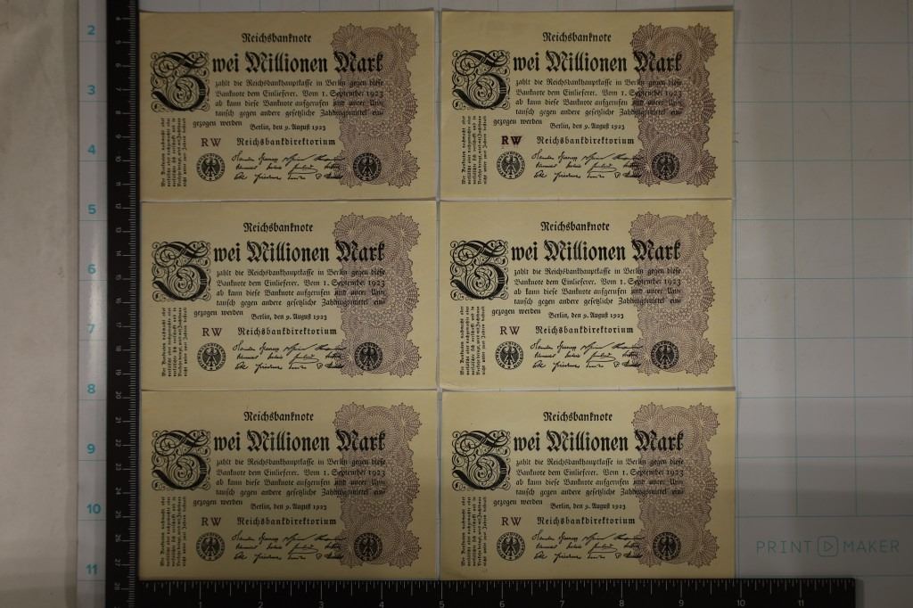 6-1923 GERMAN CRISP UNC 2 MILLION MARK BILLS