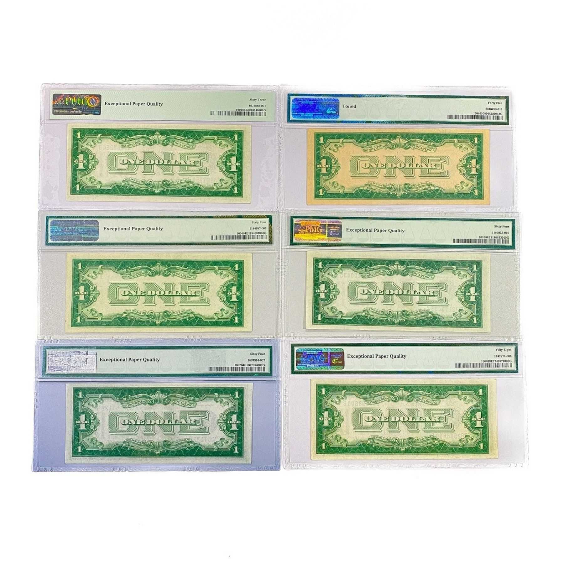 f. Notes sold referencing a third-party grading service are sold “AS IS” without any express or implied warranty, except for guarantee by GSA that they are genuine. Grading, condition or other attributes of any Product may have a material effect on its value and the opinion of others, including third-party grading services such as PCGS Currency and PMG may differ with that of GSA. GSA shall not be bound by any prior or subsequent opinion, determination, or certification by any grading service. Bidders specifically waive any claim to right of return of any Product because of the opinion, determination, or certification, or lack thereof, by any grading service. Certain warranties may be available from the grading services and Bidders are referred to them for further details: Paper Money Guaranty (PMG), PO Box 4711, Sarasota, FL 34230; PCGS Currency, PO Box 10470, Peoria, IL 61612-0470; PCGS Gold Shield, PO Box 9458, Newport Beach, CA 92658. Third-party graded notes are not returnable for any reason whatsoever.
