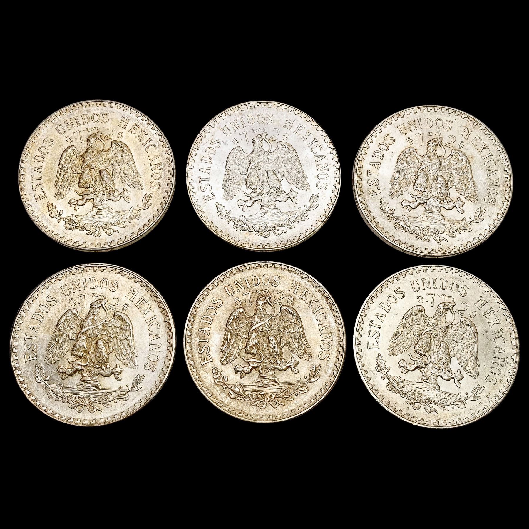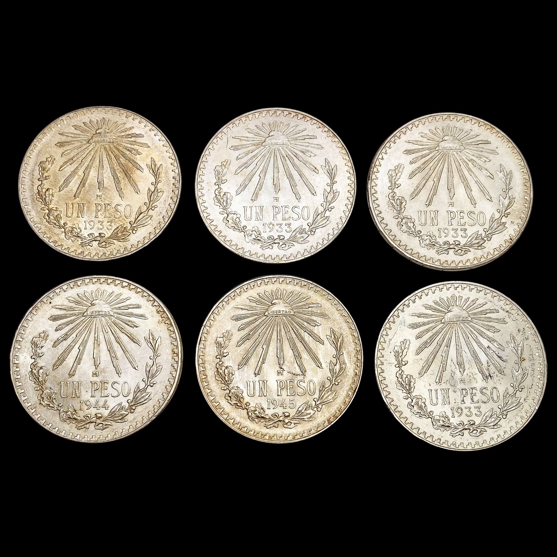 [6] 1933-1945 Mexico Silver One Peso Lot UNCIRCULATED