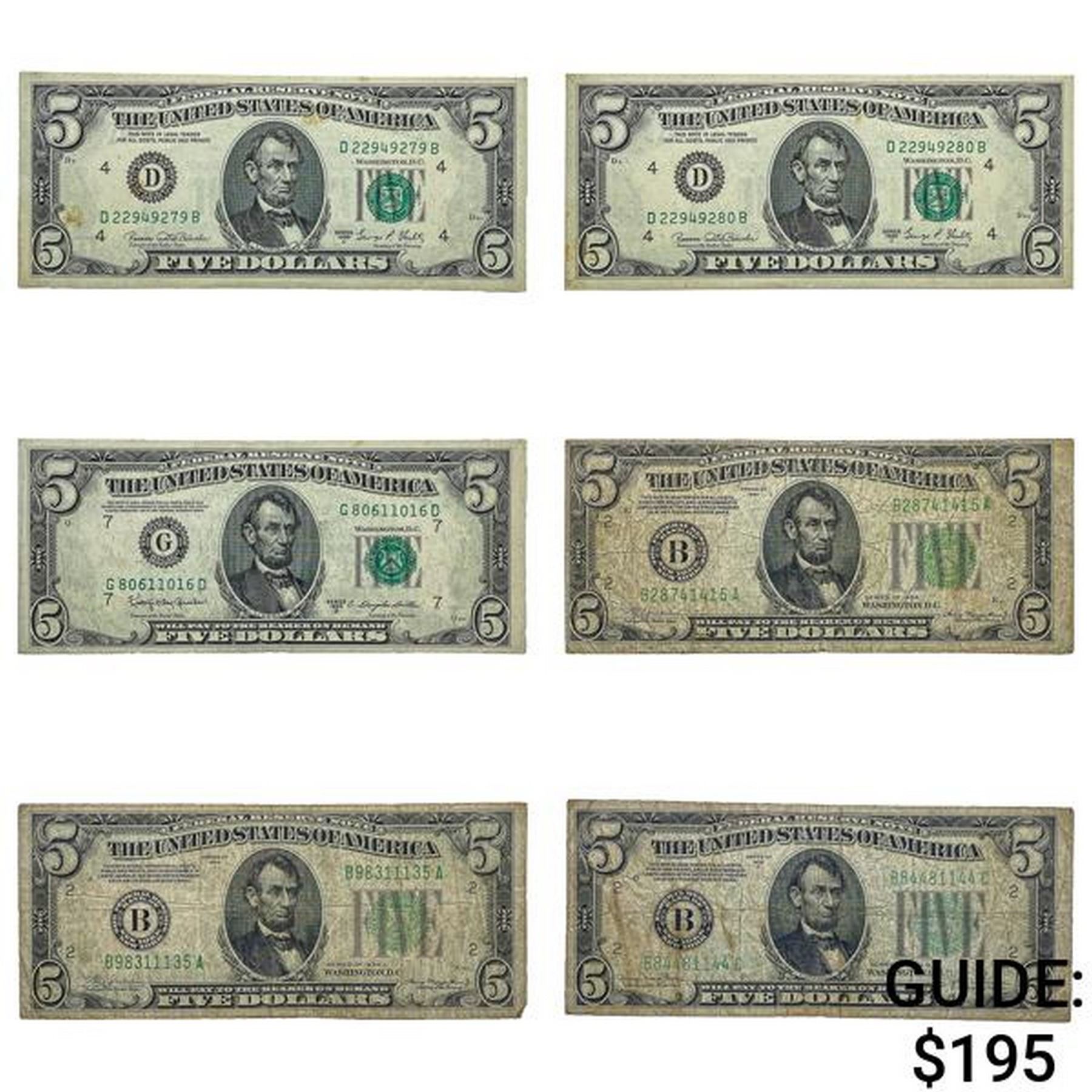 [6]1934-1969 $5 U.S. FRN w/ 2 Consecutive Serial
