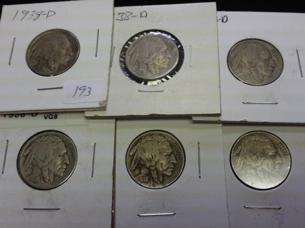 6-1938-D BUFFALO NICKELS ALL GRADE VG AND UP