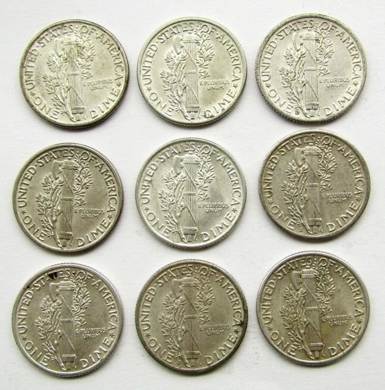 6 - 1941 MERCURY DIMES, 3 - 1942 MERCURY DIMES